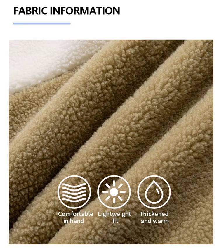 Fabric: Lamb wool fabric is very soft, with a delicate touch and excellent insulation performance.