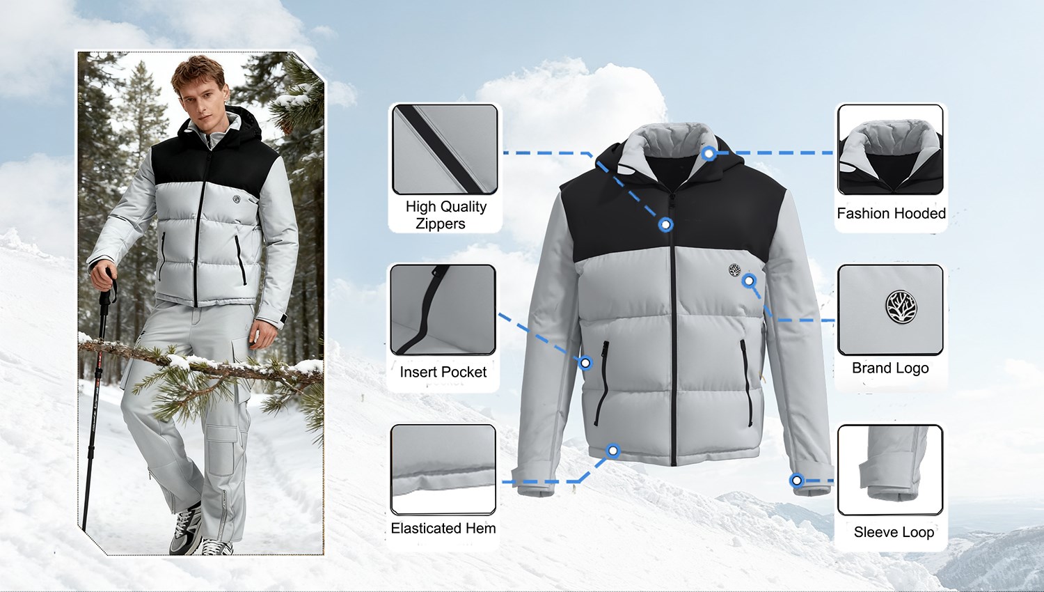 ②Hooded Design:The hood effectively blocks wind drafts while providing thermal protection for the head, enhancing overall warmth to keep the wearer comfortably insulated in cold conditions.