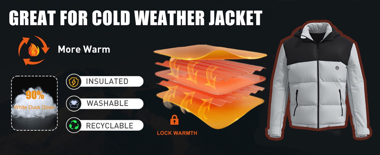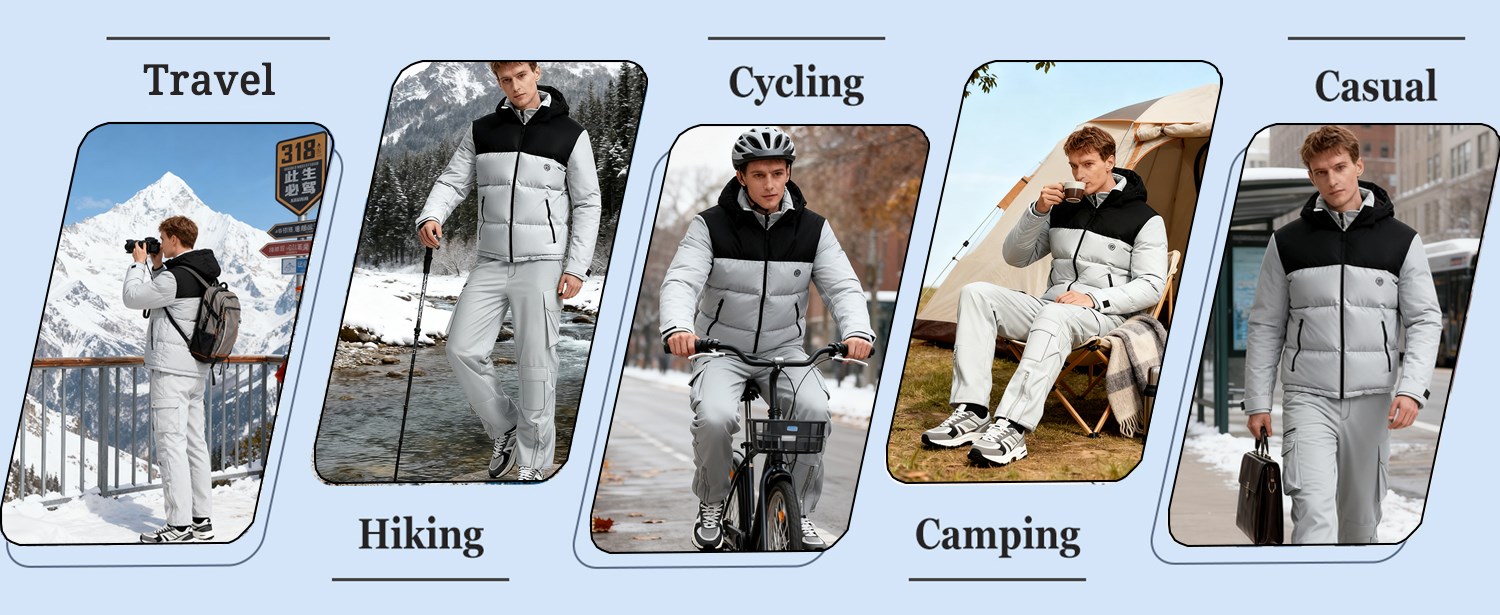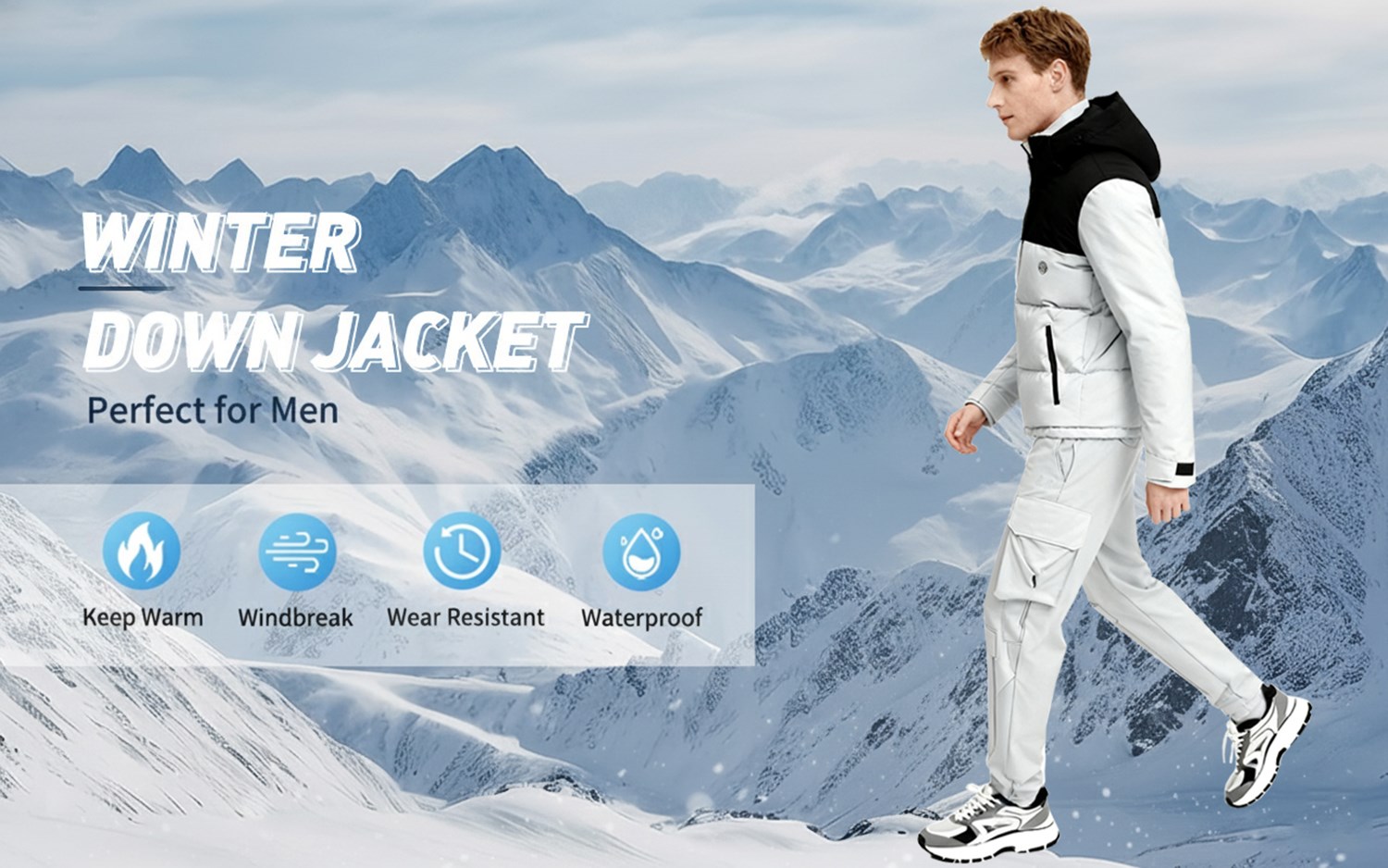 This down jacket fully utilizes the ultra-lightweight and superior warmth of white duck down filling to bring you ultimate warmth. This high-performance down jacket, designed specifically for men, perfectly meets the warmth needs of various outdoor climates (from mild to frigid), creating a comfortable and close-fitting wearing experience, allowing you to feel warm and protected in spring, autumn, and winter.