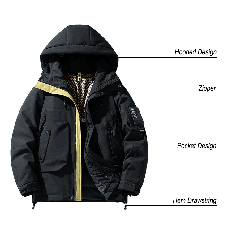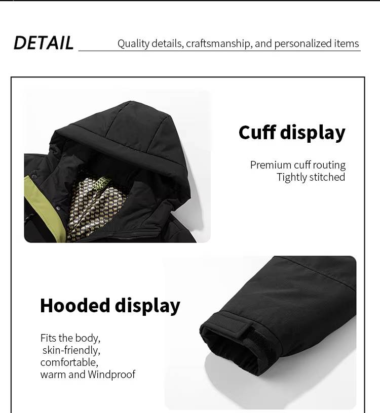 Cuff: Elastic cuffs with adjustable Velcro design for warmth and wind resistance.