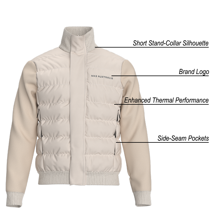 Men’s Short Down Coat Stand Collar Sorona Agile Fabric Quilted Bomber Puffer Jacket