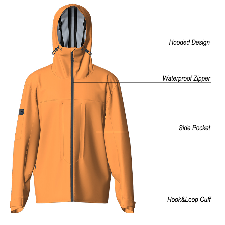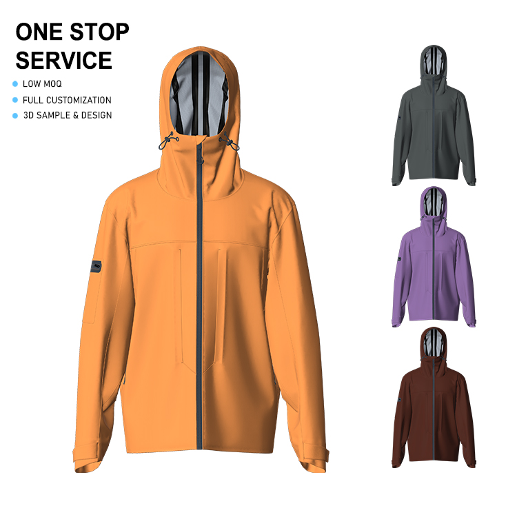 Best Selling High Quality Custom Men’s Hard Shell Woven Rain Coat Zipper Closure Solid Polyester Material-Wholesale Casual Wear