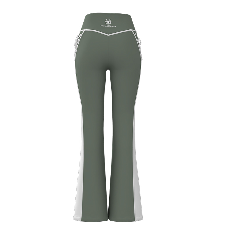 ②Silhouette: Bootcut silhouette with functional side slits at hem for ease of movement. Features a contoured fit and versatile styling.