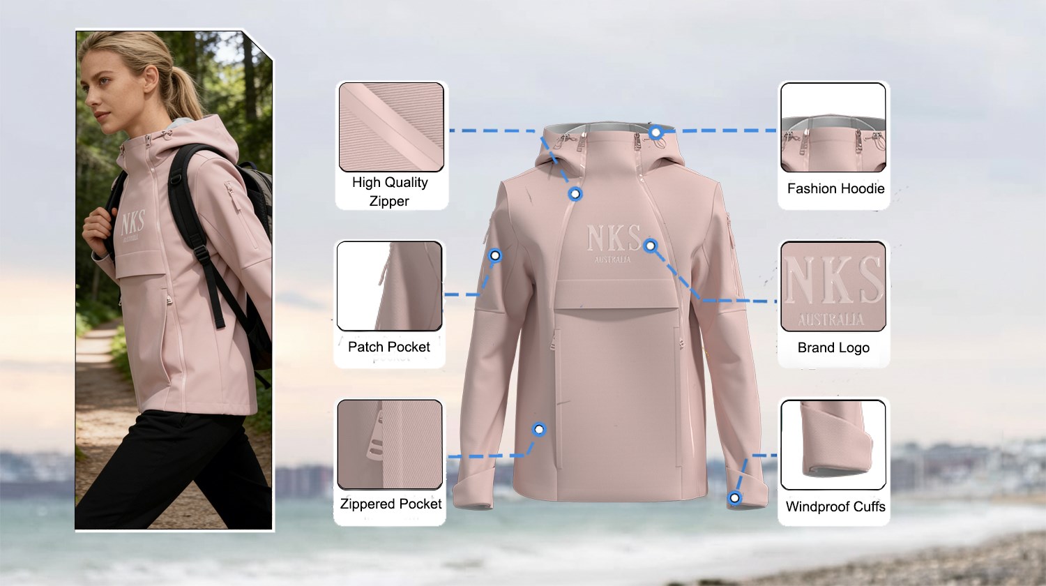②Silhouette:The design is optimized for freedom of movement, making it suitable for outdoor activities such as hiking, while also serving as a wind-resistant urban commuter jacket. This versatile garment balances practicality and style.