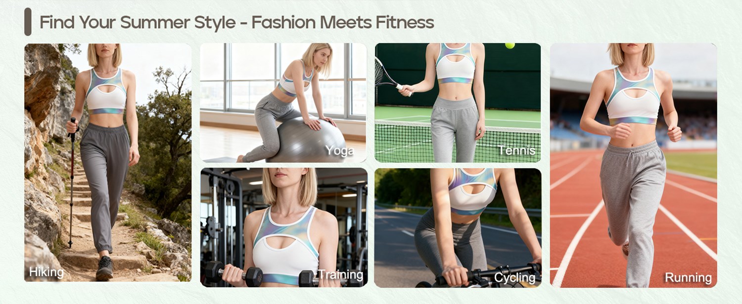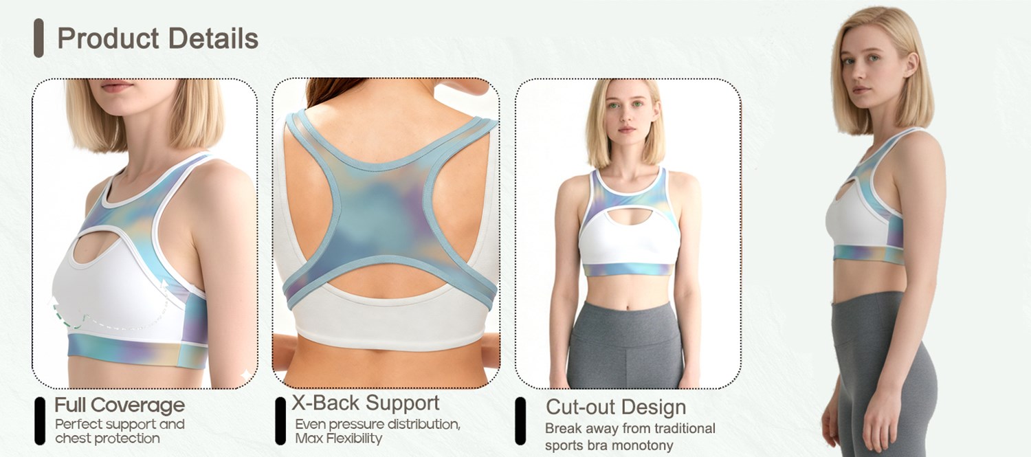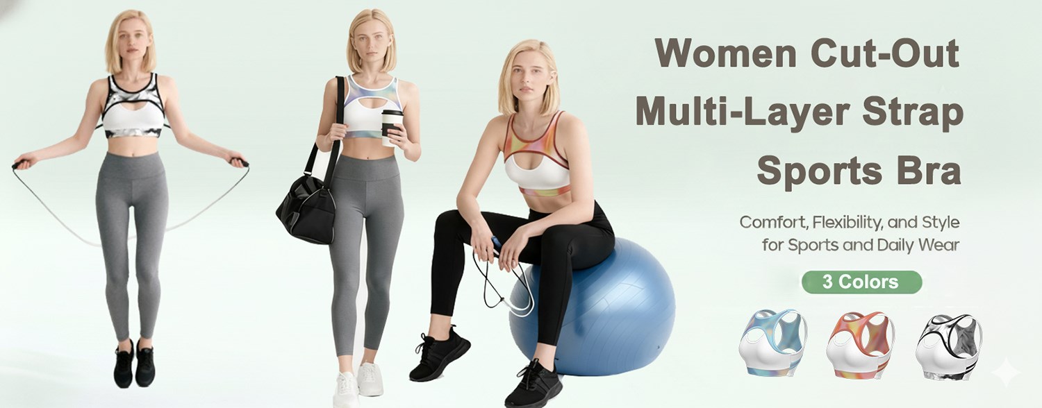 ③Multi-Scenario Versatility:Classic and Minimalist Color Scheme.Cut-Out and Multi-Layer Strap Design.Breaks the Monotony of Sports Bras.Street-Style Appeal When Worn as Outerwear.Meets the Demand for Both Functional Activewear and Fashion.