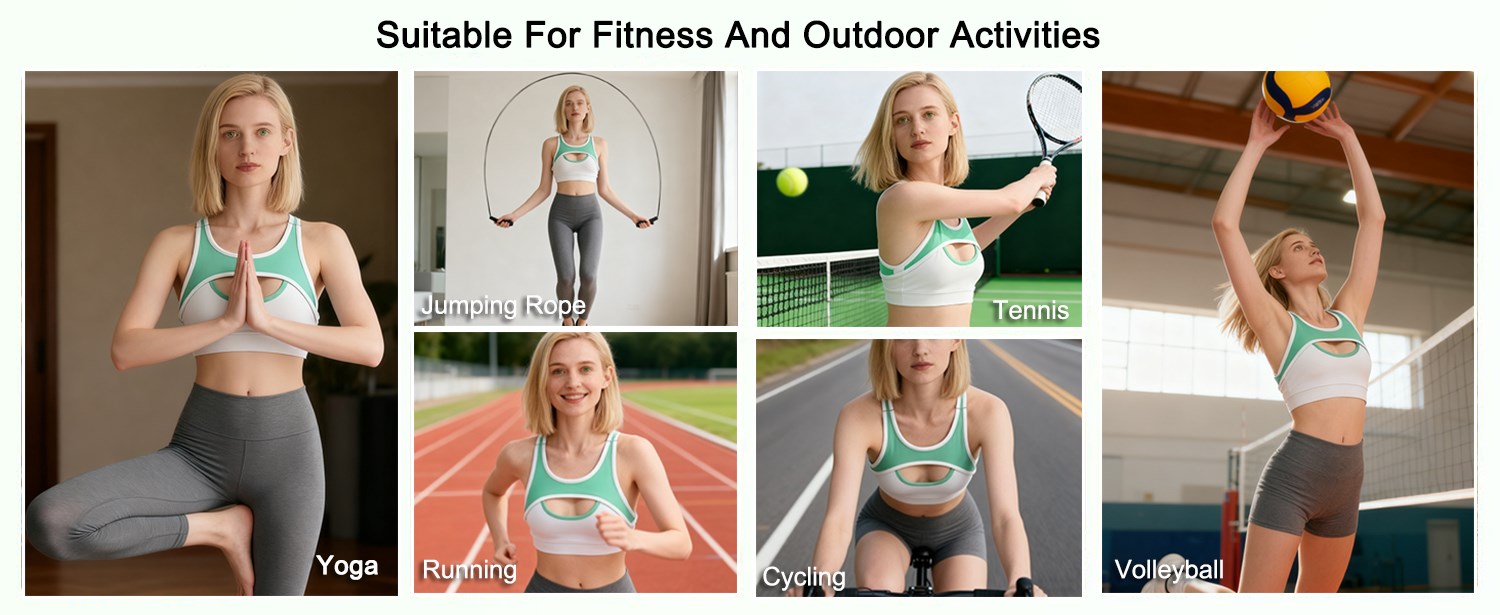 ②Fashionable Color Blocking:The classic black and white color scheme delivers minimalist elegance, with cut-out details and multi-layer strap designs that break away from traditional sports bra monotony. Its streetwear-ready styling offers fashion-forward appeal, perfectly blending athletic functionality with style.