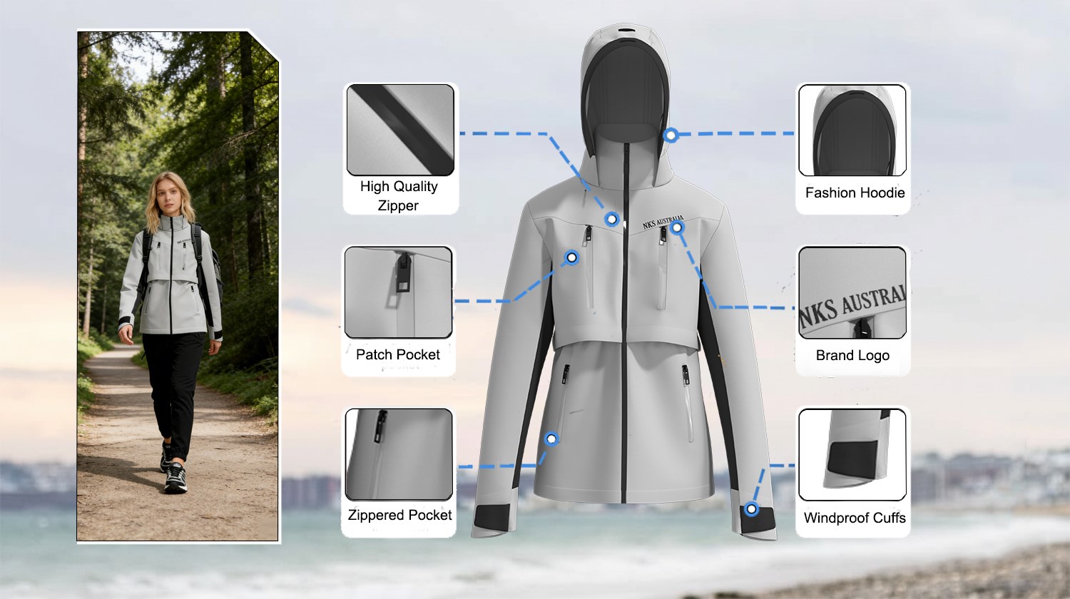 ②Silhouette:The design is optimized for freedom of movement, making it suitable for outdoor activities such as hiking, while also serving as a wind-resistant urban commuter jacket. This versatile garment balances practicality and style.